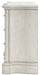- Antiqued white painted finish