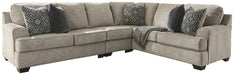 Whether your style is clean and contemporary or cozy modern farmhouse, this sectional and ottoman in a stone-tone neutral upholstery brings your vision to life. Merging ultimate comfort with striking good looks, this chic set includes coordinating accent pillows and provides hidden storage within the ottoman.