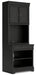 Make a style statement with this home office bookcase. Its traditional design is updated with an on-trend vintage black finish. A hutch with LED underlighting shines a light on those elusive reading glasses and other desktop items. The bookshelf, drawer and cabinet space add up to a well-organized work area.